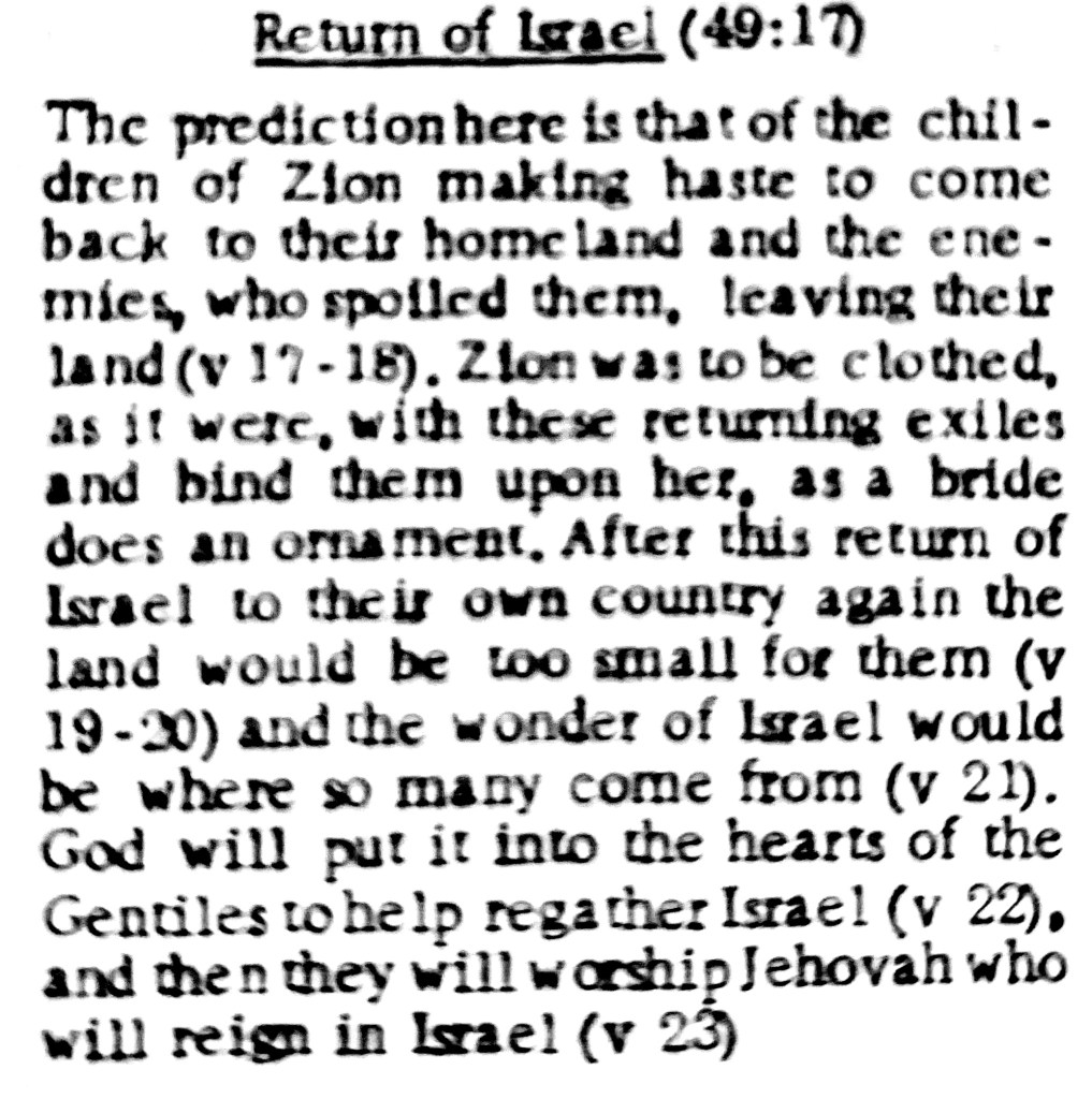 From Dakes: These prisoners are spoken of as having the Messiah as their Sheppard. He will: 1 Feed them in the way-along the paths in which He leads them (verse 9) 2 Give them pastures in high places 3 Satifsfy them so that they will never hunger or thirst (verse10) 4 Protect them from the heat of the sun 5 Lead them all their days 6 Guide them to springs of living water (verse 10 , Revelation 7:15-17 15 Therefore are they before the throne of God, and serve him day and night in his temple: and he that sitteth on the throne shall dwell among them.16 They shall hunger no more, neither thirst any more; neither shall the sun light on them, nor any heat.17 For the Lamb which is in the midst of the throne shall feed them, and shall lead them unto living fountains of waters: and God shall wipe away all tears from their eyes.