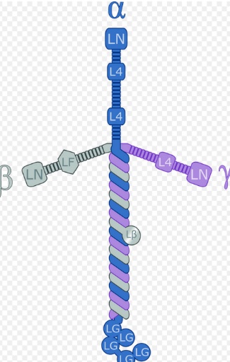 Laminin diagram (below) created to show components of the 3 stranded protein in an easy to see format from wiki https://en.wikipedia.org/wiki/Laminin